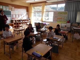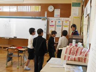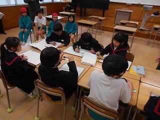低学年におすそ分けに行く前にお話しすることを打合せしていました。
