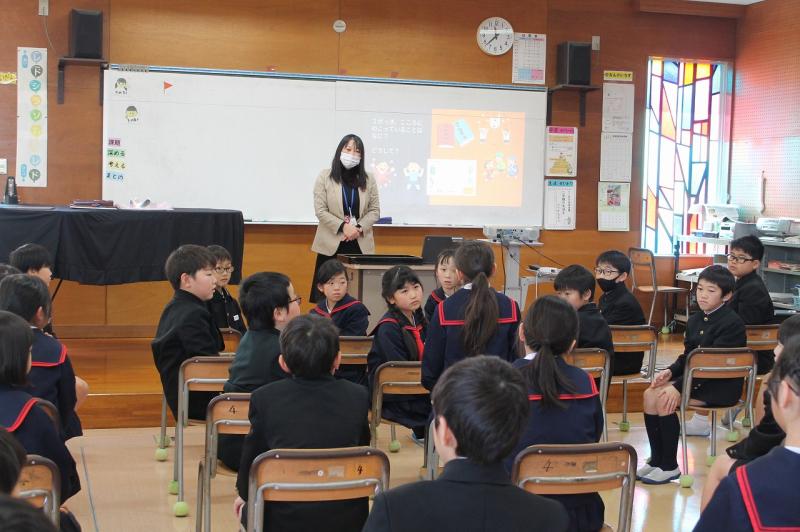 校長先生から、萩野台小学校の「あいさつ・えがお・そうじ・きょうりょく」津幡一のすてきな姿がたくさん紹介されました。