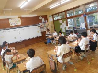 学校では、涼しくなってきたのでランチルーム給食が再開しました。