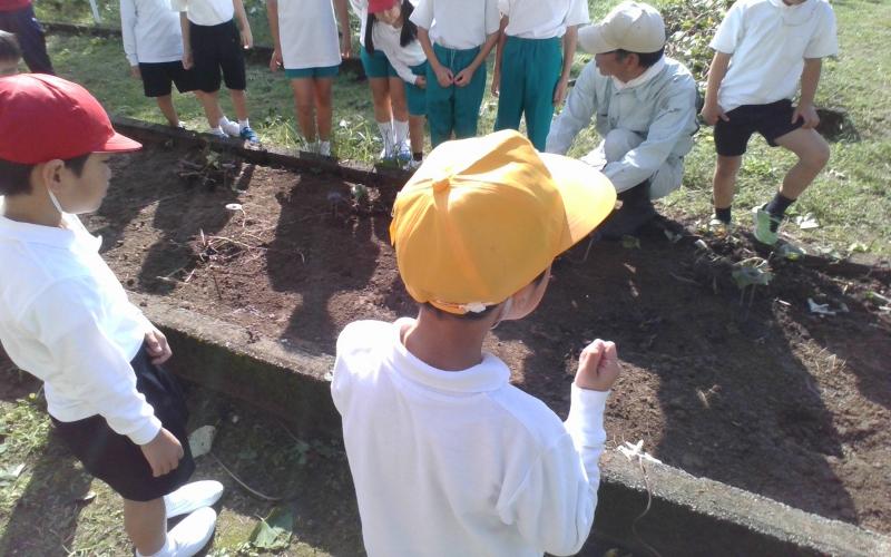 1・2年生が春に植えたさつまいもの苗。ついに、収穫時期になりました。