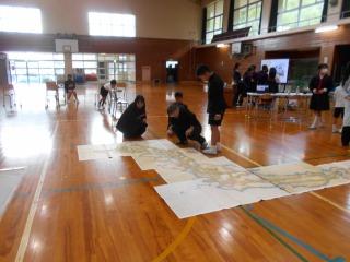 5限の授業の前に、先に昼休みに1~5年生が地図を見る機会をいただきました。