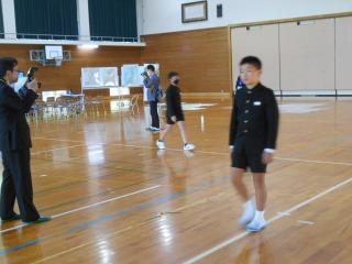 その後、歩測名人になろう、ということで、自分の歩幅を計算し、体育館の半分のコートの長さを歩いて、コートの長さはどのぐらいか測っていました。