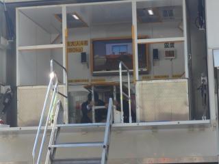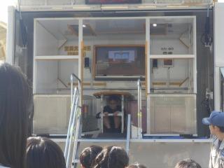 外に出て、起震車に乗り、大地震の揺れを体験しました。