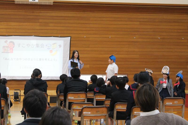 健康委員さんが、おやつの食べ方についての劇をしてくれました。