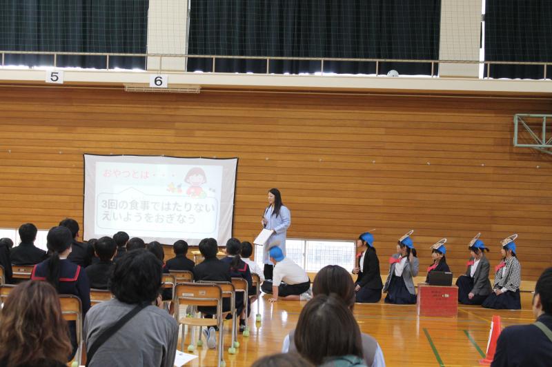 おやつの食べ方についてのアンケート結果などを用いて、説明してくれました。