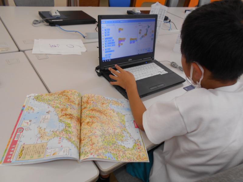 社会の地図帳を横にがんばっていました。上手にできて、みんな満足していました。サポーターの先生、ありがとうございました。