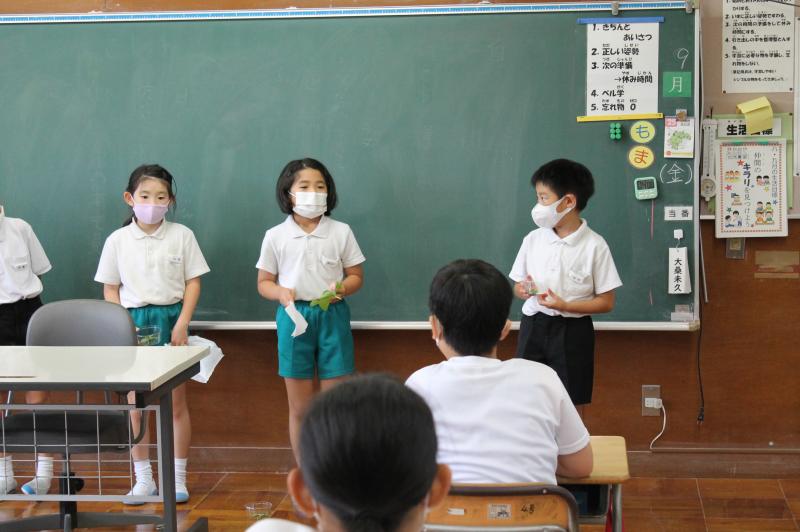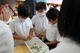 5年生はかいこの飼い方を真剣に聴いて、わからないことは2年生に質問していました。