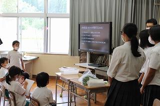2年生のみんなは、昨日高校生から教えてもらったことを一生懸命5年生に伝えていました。
