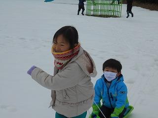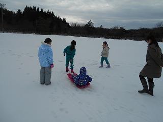 そりに乗ったり、友達のそりを引いたり、雪合戦をしたり…