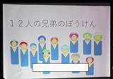 3年生児童の作った物語は、「12人の兄弟のぼうけん」です。12人の魔法使いの兄弟が、家からぬすまれた宝石をさがして冒険をする物語です。12人の兄弟の名前は月の名前、魔法の言葉は誕生石や月の花、そして、出会う動物たちは、十二支と工夫がいっぱいの物語でした。パソコンで作った絵も画面が動き、たいへんきれいで、全校のみんなは、すぐに物語に引き込まれてしまいました。
