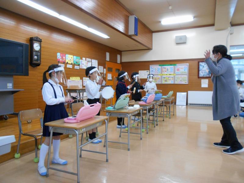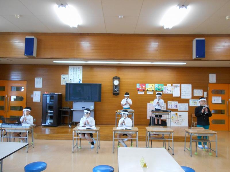 リコーダーや鍵盤ハーモニカ、ピアノ、木琴鉄琴、マラカスなどそれぞれ思い思いの楽器を選んで、パートごとに練習しました。