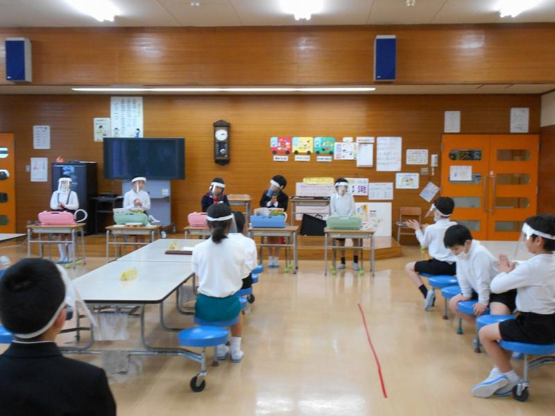 2、3限目に6年生を送る会がありました。5年生のみなさんが企画・運営をして開催しました。各学級が6年生に感謝をこめて、楽しんでもらおうと出し物を発表しました。6年生のみなさんからも楽しい出し物をしてもらいました。一人一人が、発表や運営の仕事をがんばりました。