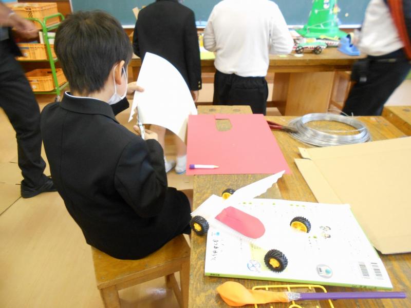 3限目、3年生は理科で、今までに学習したことを活かして作るおもちゃについて教頭先生から作品例を見せてもらい、どんなおもちゃにするか考えていました。空気を押し出す力や電気の仕組みを利用した「科学おもちゃ作り」に興味津々でした。その後は自分で黙々と作り始めていました。どんなおもちゃができるかとても楽みです。