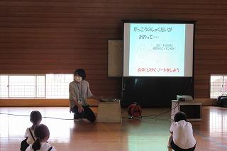 5時間目が始まり、1年生は音読発表会「やくそく」をしました。3人があおむしになって大きな木の葉っぱを食べるところから始まるお話です。3人で大きく声をそろえて読む場面では、ぴったりと息が合い、とても大きな声で聴かせてくれました。一人一人の場面でも、身振り手振りで、とても素敵に聞かせてくれました!!