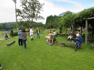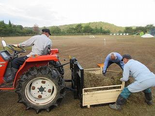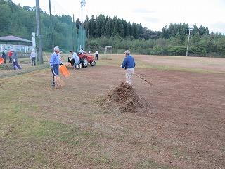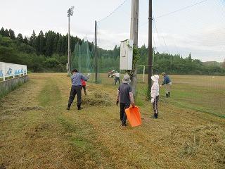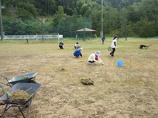 早朝6時前から、別所シニアクラブの皆様が、これまでに草刈り機や芝刈り機等で刈った草を集め、集めた草を草捨て場まで運んでくださいました。運動場がさらにきれいになり、どこの学校にも負けない立派な運動場になりました。