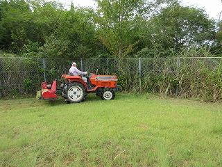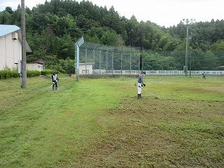 昨日PTAの皆様による草刈りを行いましたが、今日の午前中、刈り残した場所やフェンス際の場所などを、公民館館長の大西さん、地域の小山さんに刈っていただきました。いつも、ご協力いただきありがとうございます。