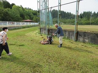 昨日PTAの皆様による草刈りを行いましたが、今日の午前中、刈り残した場所やフェンス際の場所などを、公民館館長の大西さん、地域の小山さんに刈っていただきました。いつも、ご協力いただきありがとうございます。