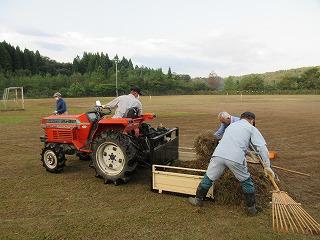 早朝6時前から、別所シニアクラブの皆様が、これまでに草刈り機や芝刈り機等で刈った草を集め、集めた草を草捨て場まで運んでくださいました。運動場がさらにきれいになり、どこの学校にも負けない立派な運動場になりました。