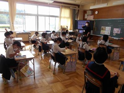 4、5年生の5限目の授業は「体によいおやつの食べ方について」を勉強しました。