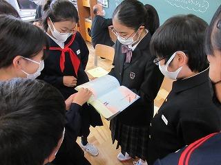 6年生からは、通学時間・先輩との関係・授業の難しさなどについて質問がありました。卒業生のみなさんは、わかりやすく丁寧に答えてくれました。実際に中学校で使っている英語や国語の教科書も見せてくれました。