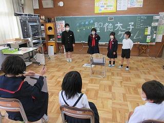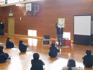 2・3年生は、4限目に、司書の先生のスペシャル読み聞かせ会をしました。読んでいただいたのは「おおみそかのおきゃくさま」という紙芝居です。親切なおじいさんとおばあさん、ちょっといじわるな長者さん、そして最後の意外な展開が面白かったです。