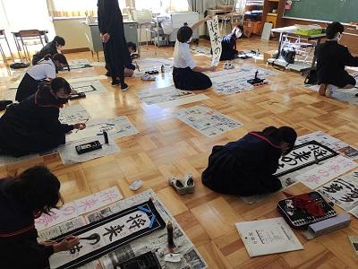 年明けにある書初め大会に向けて6年生は練習をしていました。