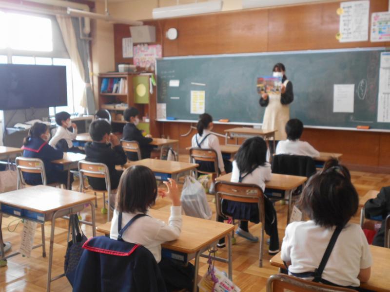 1年生は、朝学習の時間に、学校図書館司書に読み聞かせをしてもらいました。