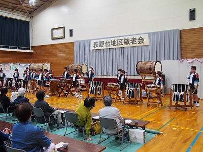 10/15(日)☂ 敬老会のオープニングで萩野っ子太鼓を演奏しました!