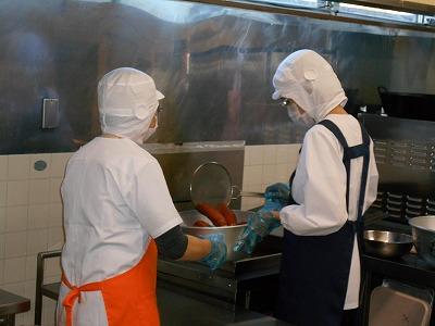 給食室では、朝から調理員さんが一生懸命揚げパンを作ってくれていました。