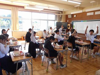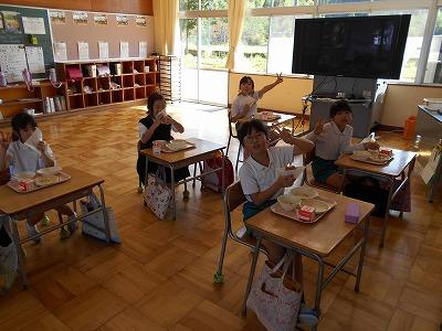 給食時間、どのクラスでもニコニコ笑顔で揚げパンをほおばる様子がほほえましかったです。