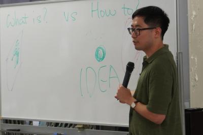 今回の講演では物事の本質について哲学的な視点から触れ、自分の頭の中の抽象的な思考を相手に伝える手段を表現するのがプログラミングであると基本的な考え方をお話してくださいました。