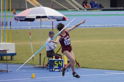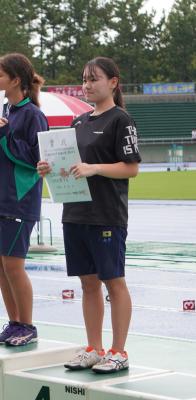 女子やり投 優勝 2年 東 花那咲 さん 記録39m98