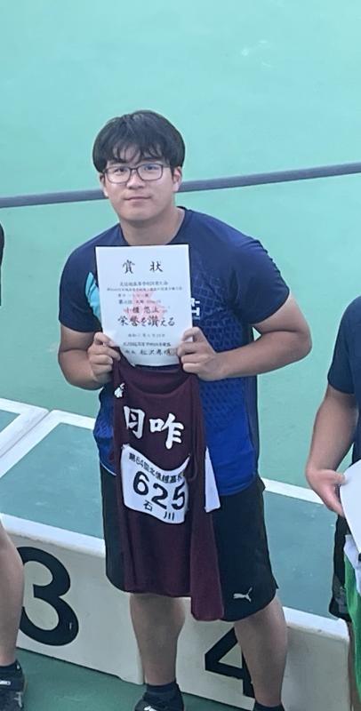 雨が降るあいにくの天候の中でも集中力を切らさず力強い投てきを見せ、見事優勝を果たしました。日頃の努力が実を結んだ素晴らしい結果です。