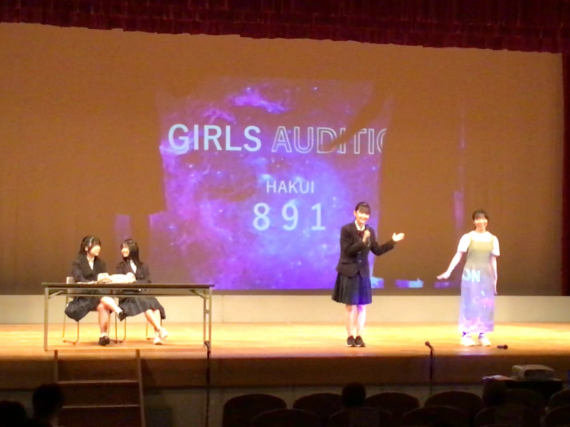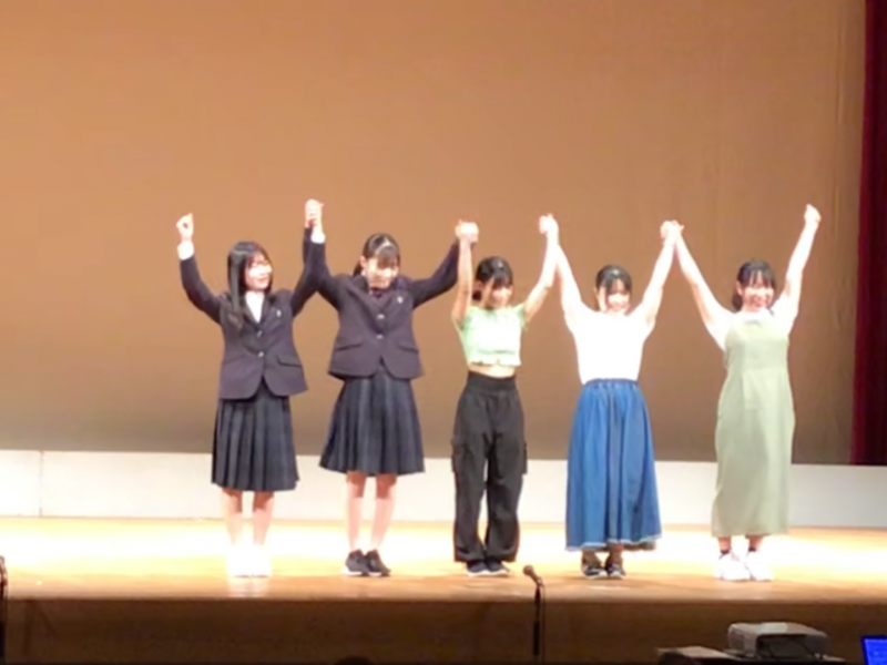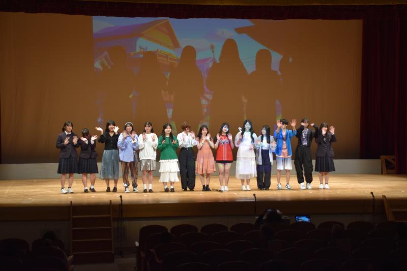 令和5年6月2日(金)石川県女性センターで開催された「第43回 ENGLISH FESTIVAL」に出場しました。4月下旬から台本作成(タイトルは"Our Strange TV Show !!")、台本の読み合わせ、発音練習、セリフの暗記、舞台練習と、常に話し合いをしながら、本番に向けてALTのウーナさんを含め、部員全員が懸命に取り組んできました。