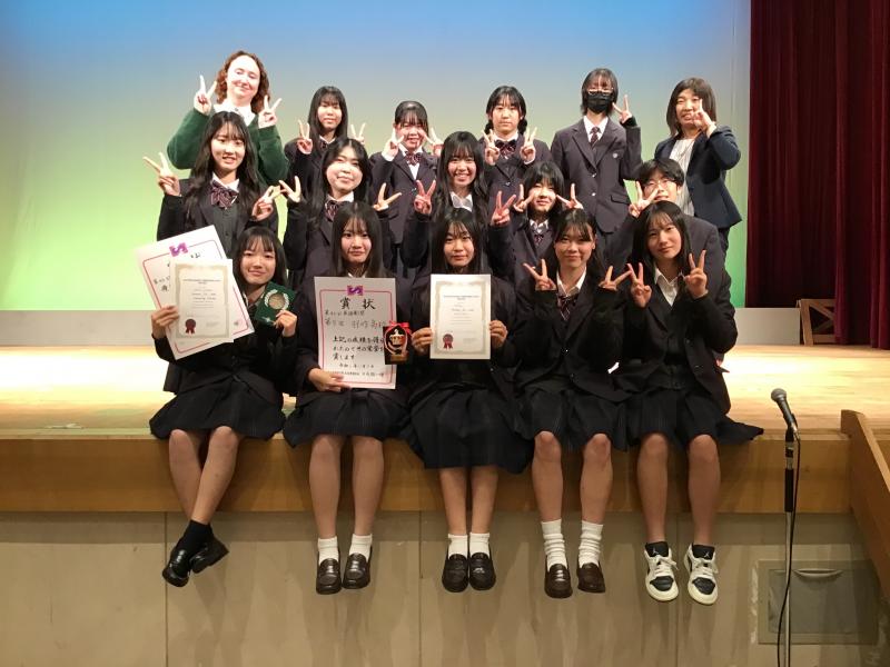 今回の大会に向けて英語の発音、演技、舞台演出など、懸命に取り組んできた成果が出てみんな大喜びでした