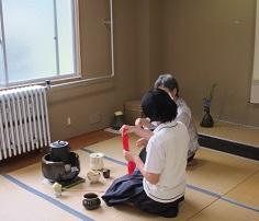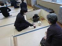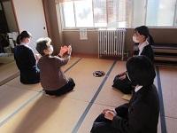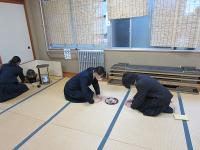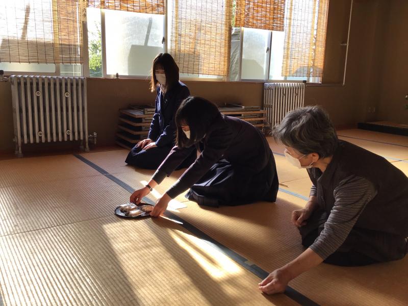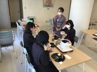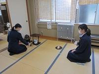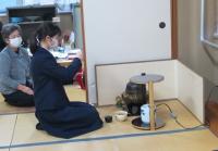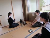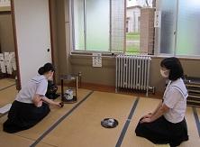 本校からは、部員7人、先生2人が参加し、茶道の先生のご指導のもと、お点前の練習や運ぶ練習等をしました。