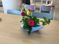 入学して緊張し続けの1年生が、お茶とお花で少しでもリラックスしてくれたらと、