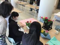 1年生は薄茶を自分で点てて飲んだり、好きな色の花を選んで自由に活けたりしました。