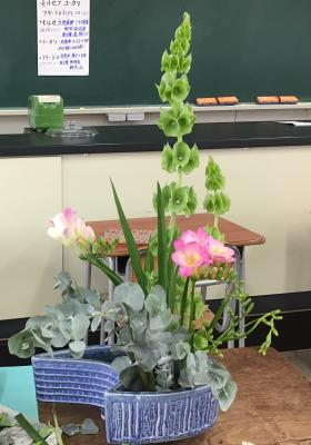 華道部は毎週水曜日にお稽古をしておりますが、最近は気温が低いためか、先週活けた花がみずみずしいままです。