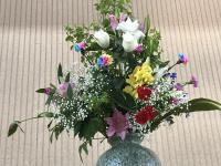 この日のお花は、あさひハラン・ガーベラ・カーネーション・クッカバラを生けました。