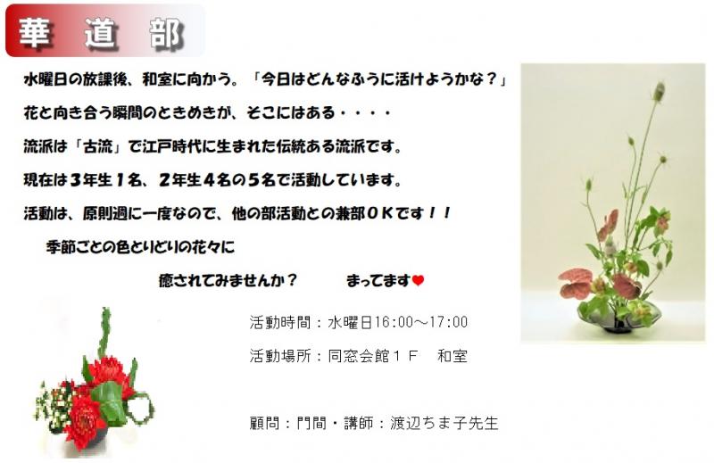 新一年生も、2,3年生も、華道部の活動に参加してみませんか?