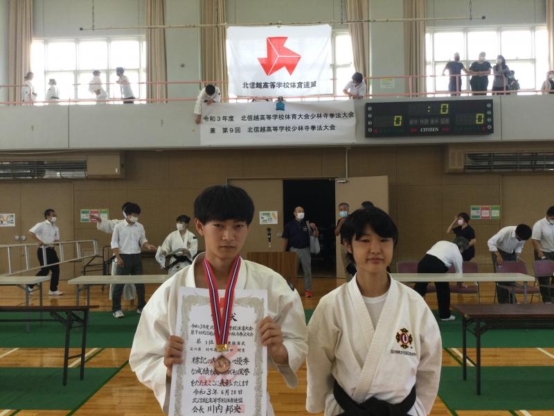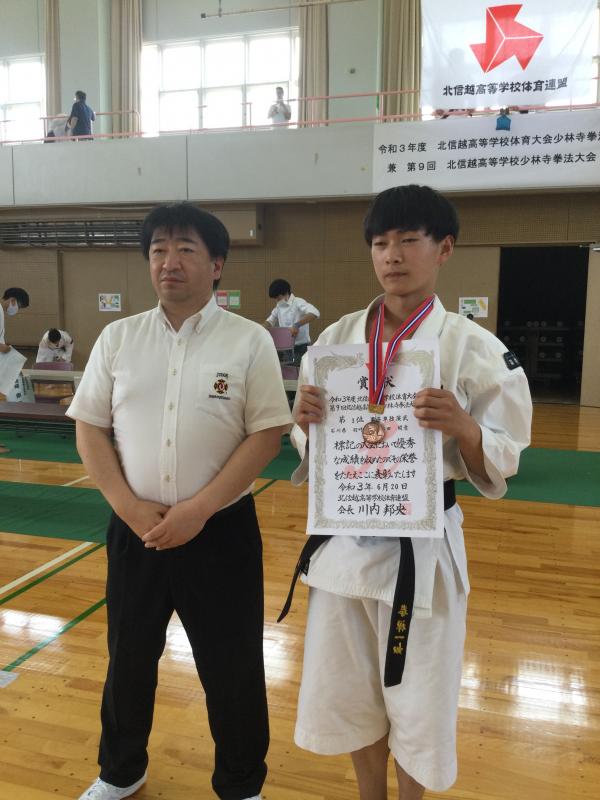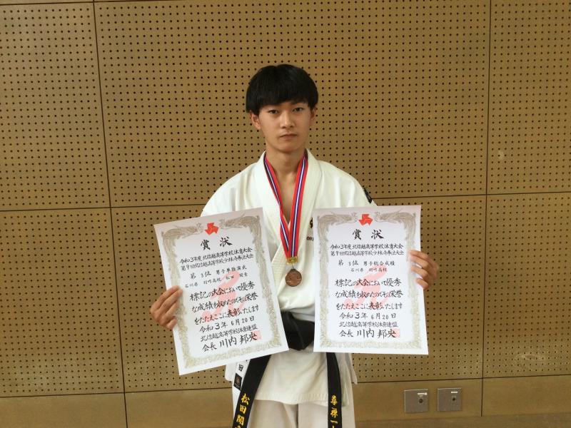 6月19日(土)、20日(日)に新潟県新潟市西総合スポーツセンターで北信越大会が行われました。3年松田開意君が第3位、3年岡田幸さんが第8位入賞を果たしました。部員が少ないなか、ひたむきに練習を重ね、有終の美を飾りました。部活動を通して精神的にも大きく成長を遂げることができたようです。これからは、部活動で培った力を受験勉強に注ぎ、進路実現の面でも希望を叶えられるよう頑張ってください。