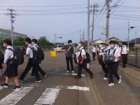 当日は快晴で、すこし暑かったのですが、生徒たちは笑顔でさわやかにあいさつし、無理な横断もせず、自動車の交通の妨げとならないようにと、考えた行動をとることができていました。
