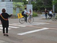 6月21日に、PTAの役員、生活指導委員、教職員20名が校舎周辺の交差点に立ち、自転車乗車マナー一斉指導を行いました。