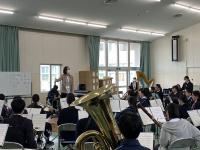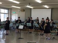 楽器体験の最後に、吹奏楽部2,3年生と、新1年生の楽器経験者の皆さんで、「アニーローリー」を演奏しました。楽器を持たない一年生も、指揮者(手拍子)で参加し、すごく温かい演奏に包まれて、幸せな気分になりました。また遊びに来てね~!!