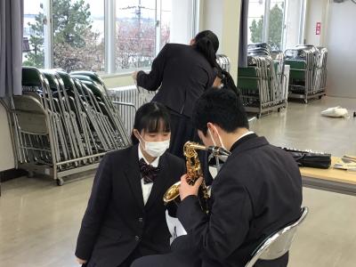 4月5日(水)、小松明峰高校吹奏楽部のみなさんと合同練習を行いました。