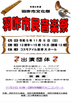 こちらは羽咋市民音楽祭のポスターです。今年は吹奏楽の皆さんとだけではなく、羽咋混声合唱団コール フロイデの皆さんと一緒に合唱もさせていただきます!皆さんのお越しをお待ちしております。