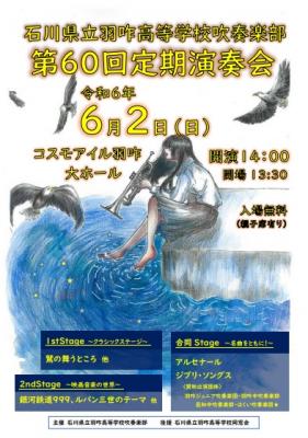 来たる5月28日(日)、第59回羽咋高校吹奏楽部定期演奏会を開催いたします。