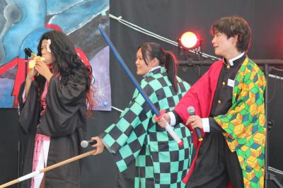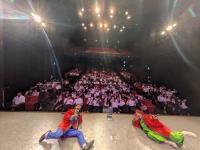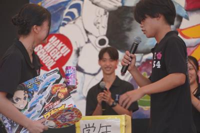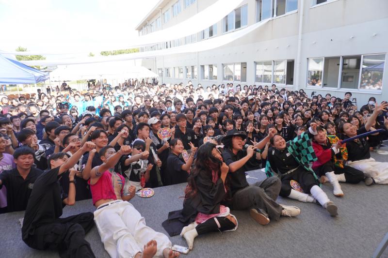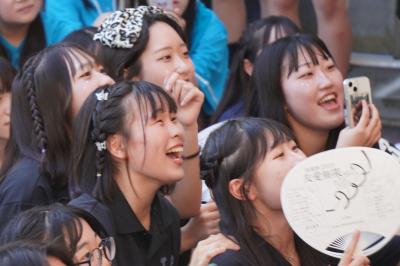 羽咋高校のために貸切公演を行っていただき、トレンディエンジェルやすゑひろがりずをはじめ、8組の芸人の皆さんが出演してくださいました。漫才やコントでは会場が笑いに包まれ、生徒や先生がステージに上がって芸人さんと一緒にゲーム参加するコーナーもあり、大変盛り上がりました。プロの芸人さんと級友がステージにあがるという貴重な体験は、生徒たちにとって忘れられない思い出になったことでしょう。