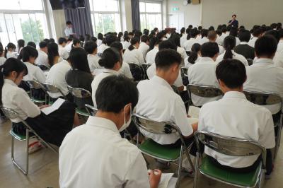 高田先生はもうすぐ受験生になる2年生に向け、目標とする大学を決める理由や受験勉強を効率よく進める方法を講義してくださり、生徒は進路実現に向けて勉強に取り組む姿勢を再認識した様子でした。